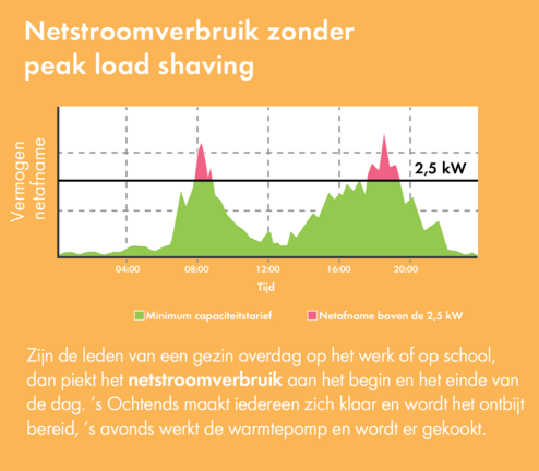 Het capaciteitstarief wordt berekend op basis van het piekverbruik in blokken van 15 minuten en het maximale piekverbruik per kalendermaand. Elke maand opnieuw wordt het gemiddelde berekend van de 12 voorafgaande maandpieken. Die gemiddelde maandpiek bepaalt de hoogte van het capaciteitstarief dat aangerekend wordt. Voor een maandpiek die onder de 2,5 kW blijft, rekent de netbeheerder een minimumbijdrage aan. Het wordt dus cruciaal om het verbruik van netstroom zoveel mogelijk te spreiden zodat de verbruikspieken worden afgevlakt.