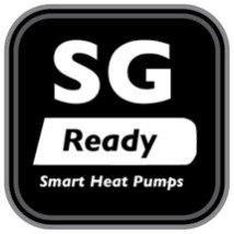 De nombreuses pompes à chaleur de marques bien connues telles que Nibe, Daikin et d’autres ont une connexion dite « SG-ready », où SG signifie: Smart Grid. Ils peuvent être reconnus par cette icône: