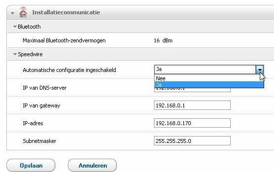 Het IP-adres van de omvormer is nu een vast IP-adres geworden. U kunt overigens hier desgewenst ook een ander IP-adres invoeren voor de omvormer, bij de regel ‘IP-adres’.