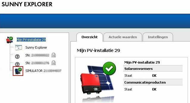 De Bluetooth communicatie is hersteld wanneer u de omvormer in Sunny Explorer ziet met een groene vink in plaats van een hangslot. De gegevens van de omvormers zullen nu beschikbaar zijn.