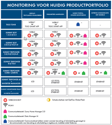 We geven u alvast een overzicht van welke opties mogelijk zijn voor onze huidige omvormers. Alle omvormers kunnen kosteloos via internet gemonitord worden.