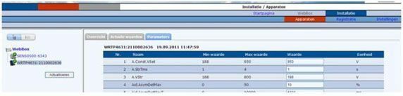 Log rechtstreeks aan in de WebBox als ‘Installer’ en selecteer een omvormer waarvan u de waarden wilt wijzigen. Ga naar de parameter pagina.