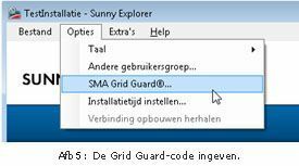 Vooraleer de installateur netbewakingsparameters kan gaan wijzigen, moet deze zijn/haar Grid Guard code ingeven in Sunny Explorer.