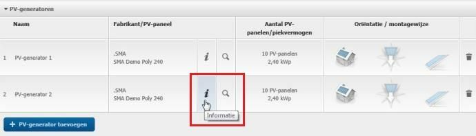 Na selectie van uw panelen, kunt u op de ‘i’ klikken voor extra informatie over betreffende panelen.