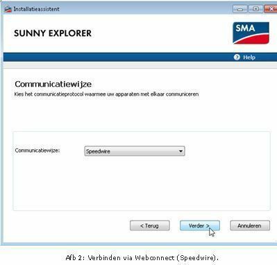 Kies als communicatietype voor Speedwire (het communicatieprotocol van Webconnect).
