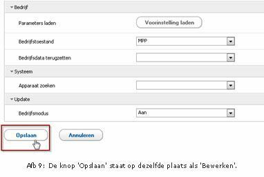 Klik op het tabblad ‘Instellingen’ en navigeer naar ‘Apparaat’ scrol naar onderen en klik op ‘Bewerken’. Nu kan de installateur de parameter gaan wijzigen.