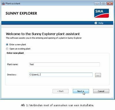Start Sunny Explorer op en maak een nieuwe installatie aan in de software.