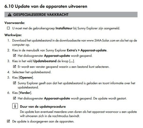 SMA voldoet aan deze nieuwe regelgeving voor het volledige huidige portfolio en bevestigt datde omvormers aan de nieuwe finale C10/26 lijst zijn toegevoegd. De omvormers moeten weliswaar beschikken over de juiste firmware (FW 3.10). Mogelijks dient hiervoor een firmware update uitgevoerd te worden.
