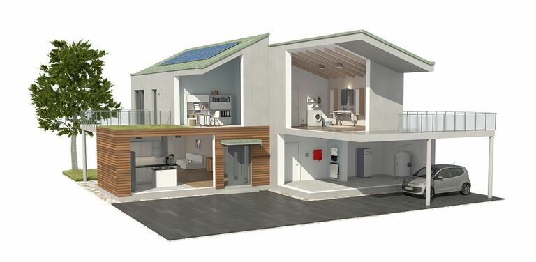 Of het gezin nu uitbreidt, er een elektrische auto bijkomt die moet worden opgeladen of de garage wordt omgebouwd tot een werkplaats - maximaal drie aansluitbare hoogspanningsbatterijen voorzien alle nood aan elektriciteit, zelfs als de zon niet schijnt.